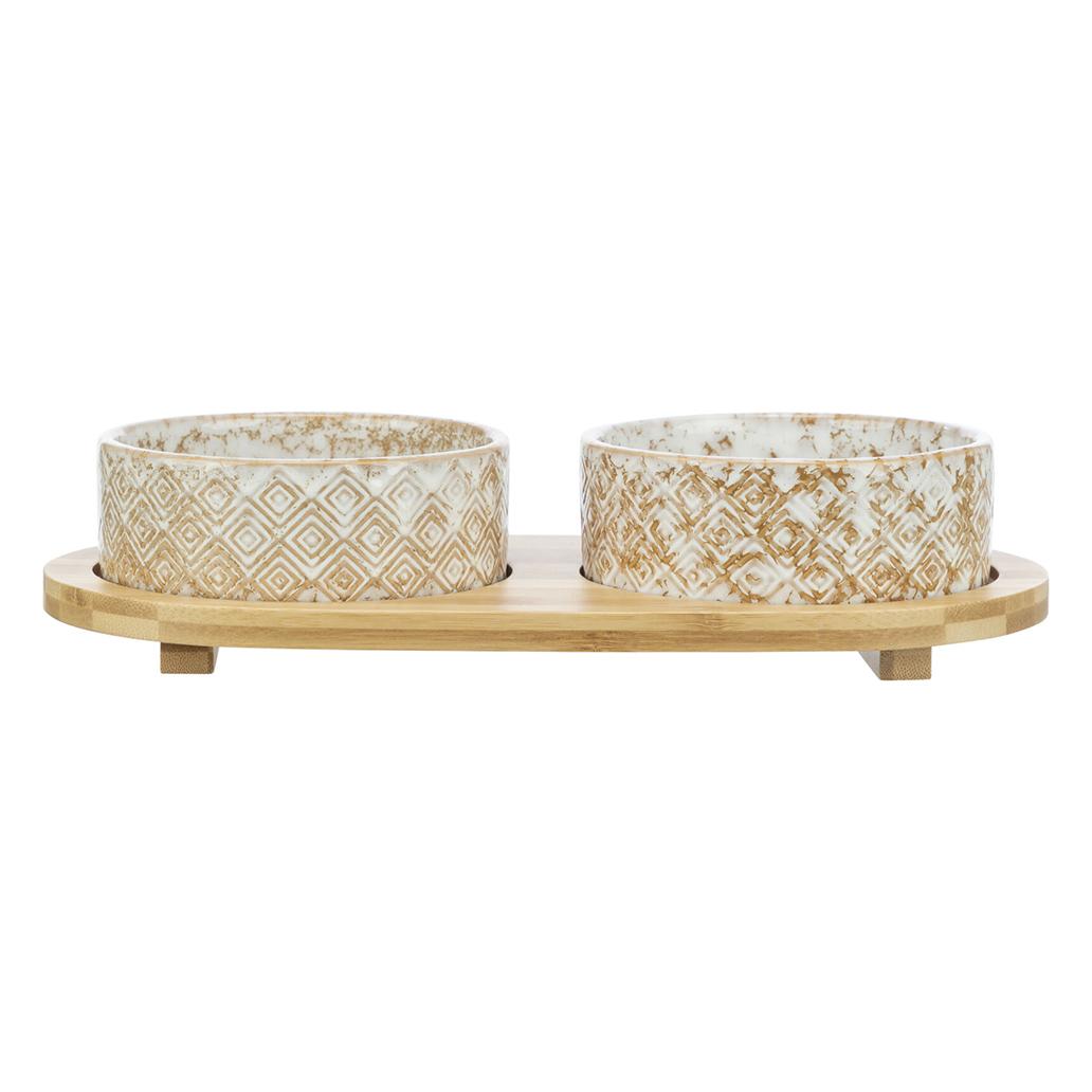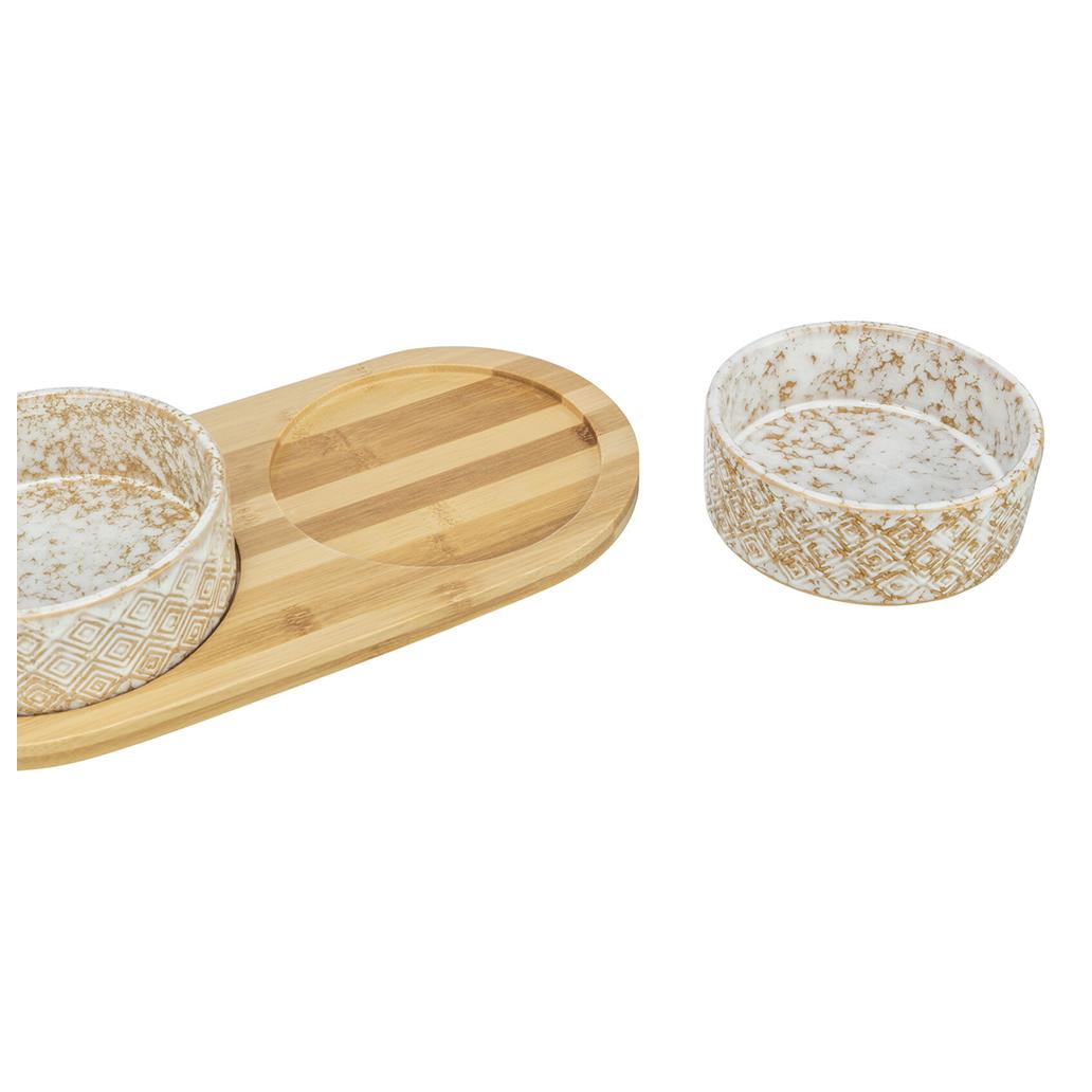 GAMELA DUPLA EM CERÂMICA COM SUPORTE EM BAMBU